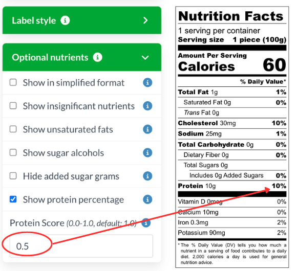 Showing the % Daily Value of protein is often optional, however, whenever you make a protein claim (even if it’s just that your product is a source of protein), it becomes a labeling requirement. And, it is always required on product labels for infants (age 0 to 12 months) and children (age 1 to 3 years). We hope it goes without saying that whatever you put on your label needs to be accurate. Now, with the Protein Score feature, you can adjust the % Daily Value based on PDCAAS.